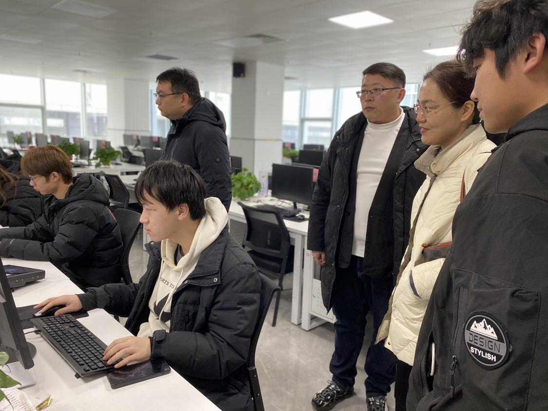 走访期间,企业负责人带领师生参观了产教融合实践基地,详细介绍了公司发展历程、业务布局及校企合作成果,并针对企业岗位设置和能力要求进行了说明。师生结合专业学习与企业人员深入交流,进一步了解了行业技术应用与职业发展路径,获得了具有针对性的行业认知与就业指导。